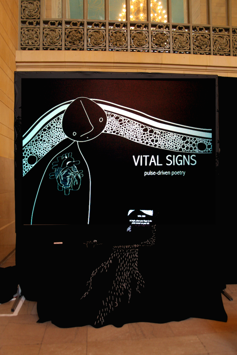 Installed at Grand Central Station for MTA Arts in Transit. VITAL SIGN translates a users pulse into the rhythm of poems about bodies and systems.